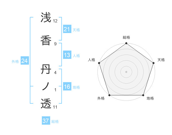 浅香 丹ノ透さんを姓名の画数から五運を鑑定