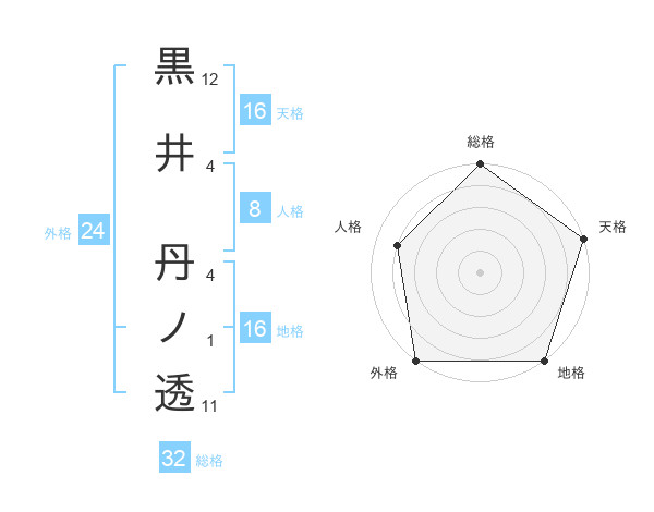 黒井 丹ノ透さんを姓名の画数から五運を鑑定