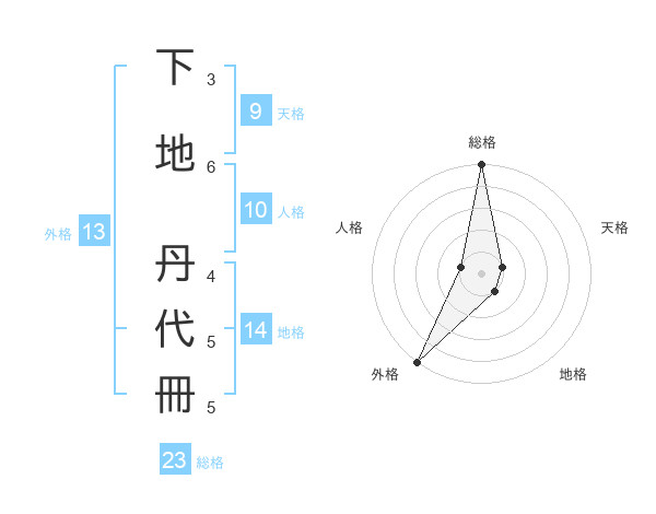 下地 丹代冊さんを姓名の画数から五運を鑑定