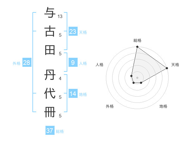 与古田 丹代冊さんを姓名の画数から五運を鑑定