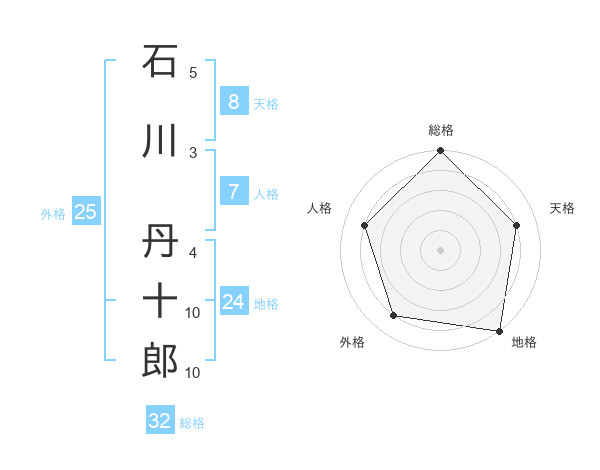石川 丹十郎さんを姓名の画数から五運を鑑定