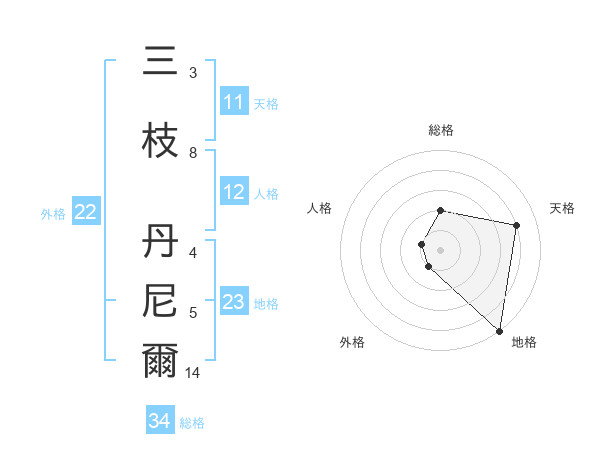 三枝 丹尼爾さんの外格は22画の1点!