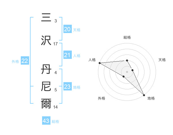 三沢 丹尼爾さんの外格は22画の1点!