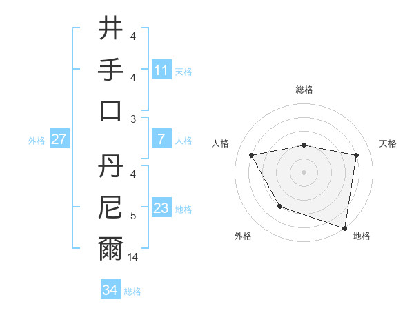 井手口 丹尼爾さんを姓名の画数から五運を鑑定