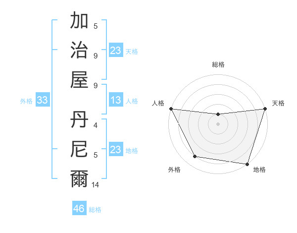 加治屋 丹尼爾さんを姓名の画数から五運を鑑定
