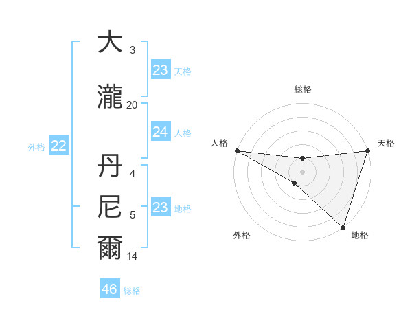 大瀧 丹尼爾さんを姓名の画数から五運を鑑定