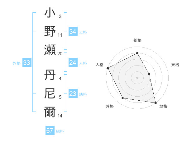 小野瀬 丹尼爾さんの天格は34画の2点!