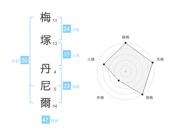 梅塚 丹尼爾さんを姓名の画数から五運を鑑定