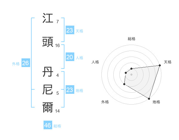 江頭 丹尼爾さんを姓名の画数から五運を鑑定