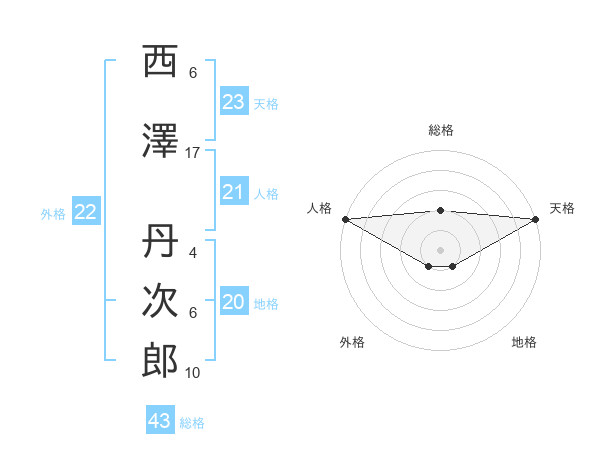 西澤 丹次郎さんを姓名の画数から五運を鑑定