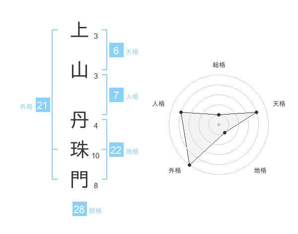 上山 丹珠門さんの総格は28画の1点!