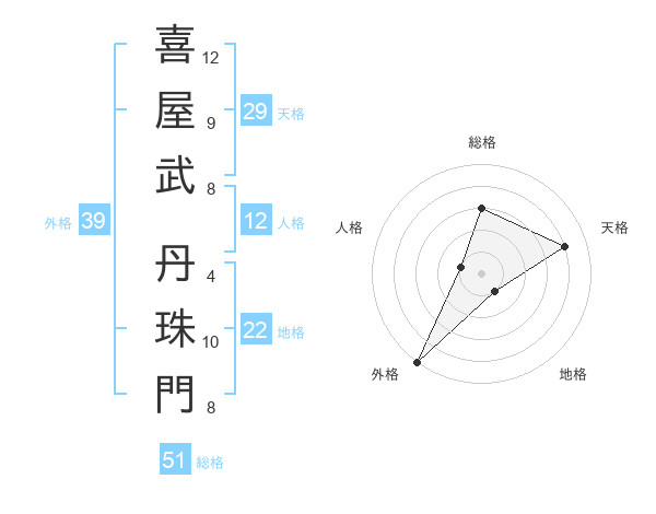 喜屋武 丹珠門さんを姓名の画数から五運を鑑定