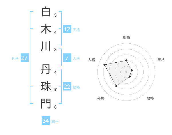 白木川 丹珠門さんを姓名の画数から五運を鑑定