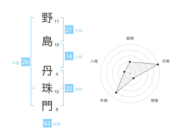 野島 丹珠門さんを姓名の画数から五運を鑑定