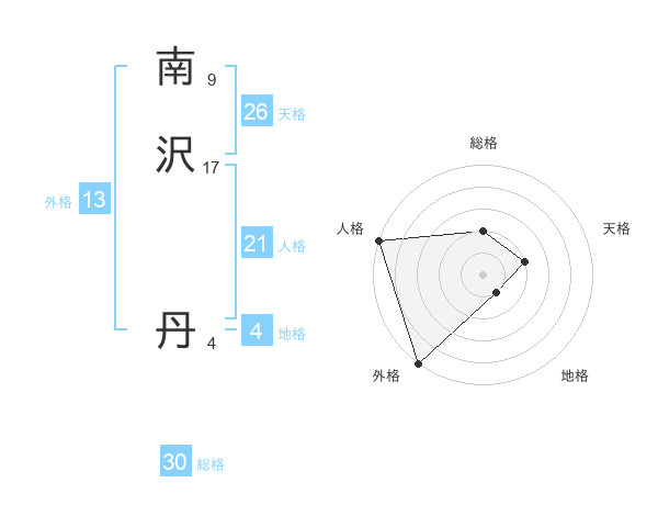 南沢 丹さんの外格は13画の5点!