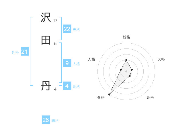 沢田 丹さんの外格は21画の5点!