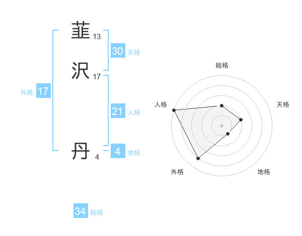 韮沢 丹さんの総格は34画の2点!