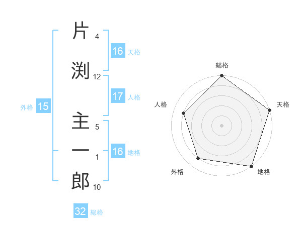 片渕 主一郎さんを姓名の画数から五運を鑑定