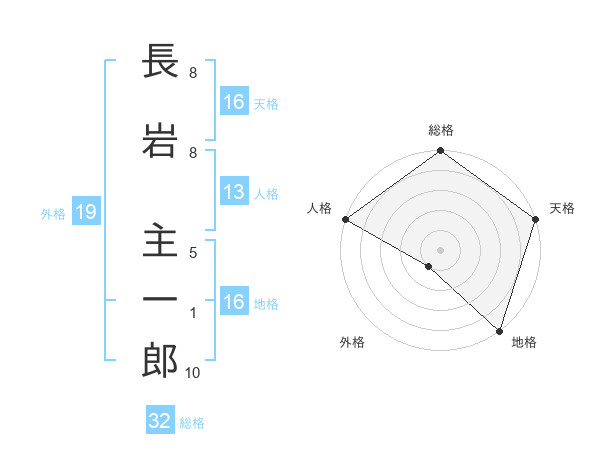 長岩 主一郎さんを姓名の画数から五運を鑑定
