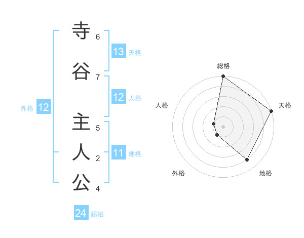 寺谷 主人公さんを姓名の画数から五運を鑑定