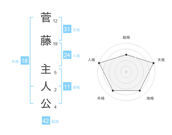 菅藤 主人公さんを姓名の画数から五運を鑑定