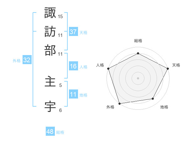諏訪部 主宇さんを姓名の画数から五運を鑑定