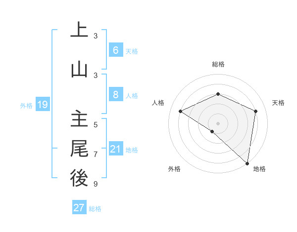 上山 主尾後さんを姓名の画数から五運を鑑定