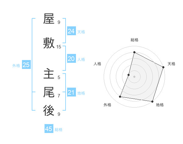 屋敷 主尾後さんの総格は45画の4点