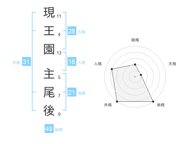 現王園 主尾後さんの地格は21画の5点!