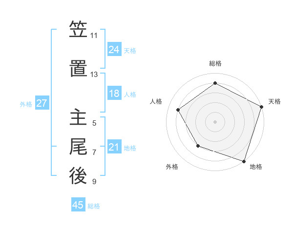 笠置 主尾後さんを姓名の画数から五運を鑑定