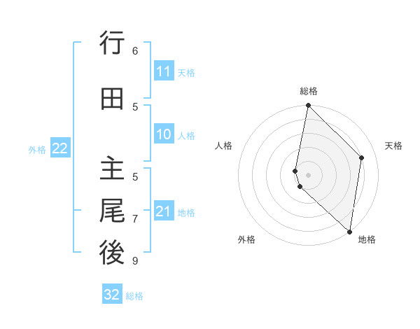 行田 主尾後さんを姓名の画数から五運を鑑定