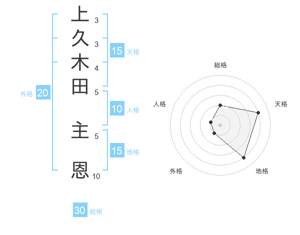 上久木田 主恩さんの地格は15画の4点!