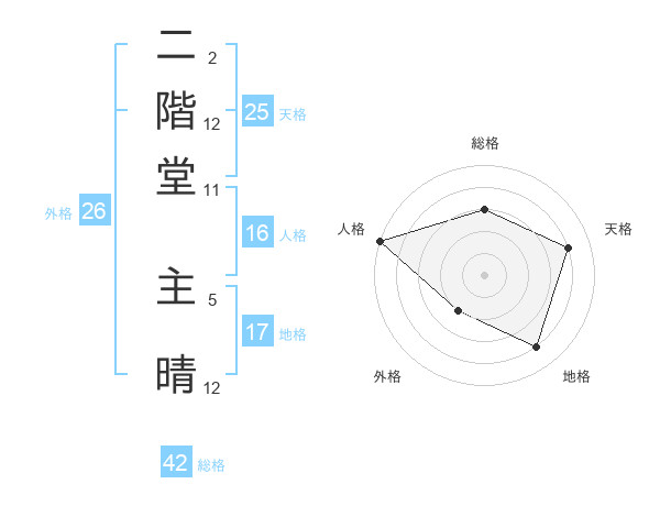 二階堂 主晴さんを姓名の画数から五運を鑑定