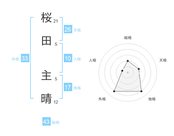 桜田 主晴さんを姓名の画数から五運を鑑定