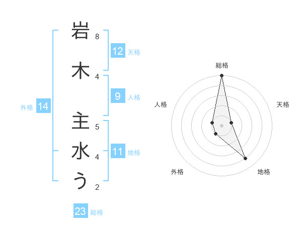岩木 主水うさんの総格は23画の5点!