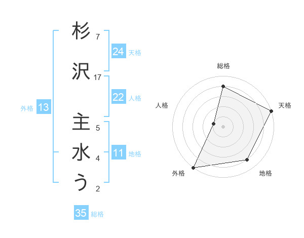 杉沢 主水うさんを姓名の画数から五運を鑑定