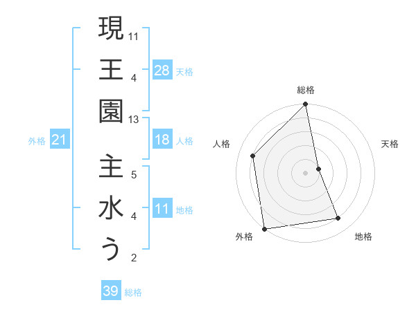 現王園 主水うさんを姓名の画数から五運を鑑定