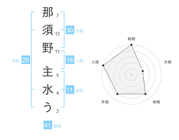 那須野 主水うさんを姓名の画数から五運を鑑定