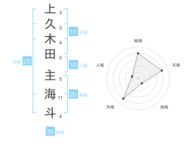 上久木田 主海斗さんを姓名の画数から五運を鑑定