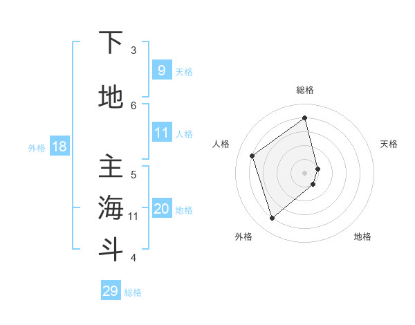 下地 主海斗さんを姓名の画数から五運を鑑定