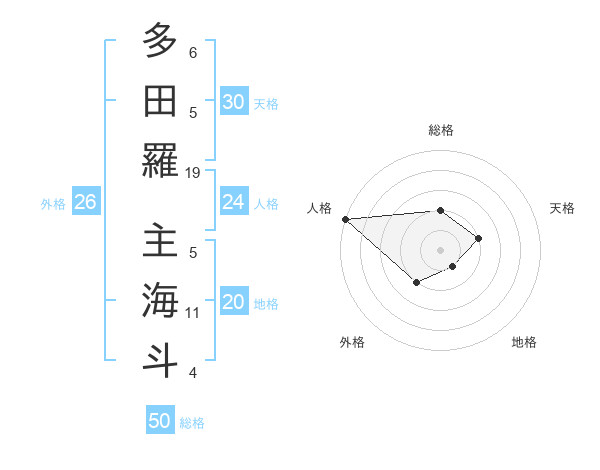 多田羅 主海斗さんを姓名の画数から五運を鑑定