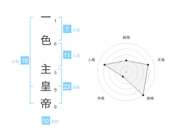 一色 主皇帝さんを姓名の画数から五運を鑑定