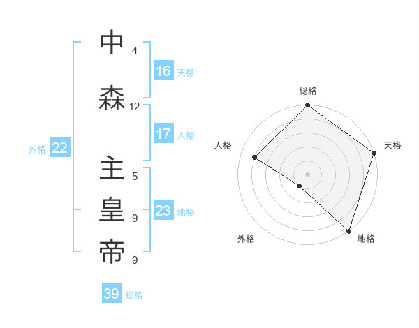 中森 主皇帝さんを姓名の画数から五運を鑑定