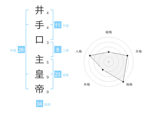 井手口 主皇帝さんを姓名の画数から五運を鑑定