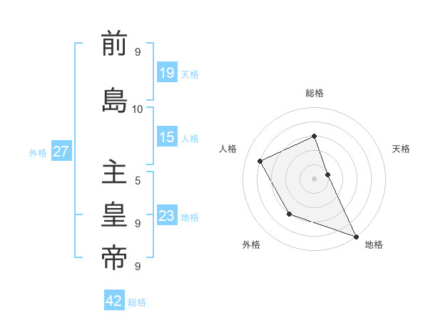 前島 主皇帝さんを姓名の画数から五運を鑑定