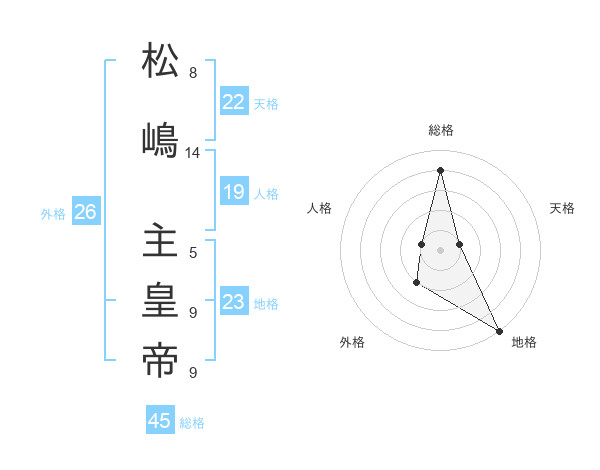 松嶋 主皇帝さんを姓名の画数から五運を鑑定