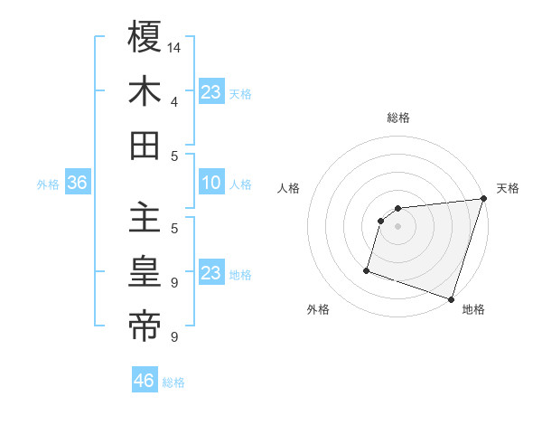 榎木田 主皇帝さんを姓名の画数から五運を鑑定