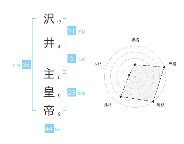 沢井 主皇帝さんの総格は44画の2点!