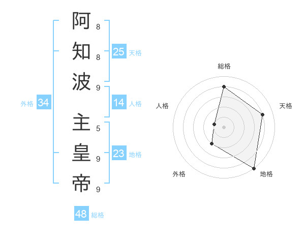阿知波 主皇帝さんを姓名の画数から五運を鑑定