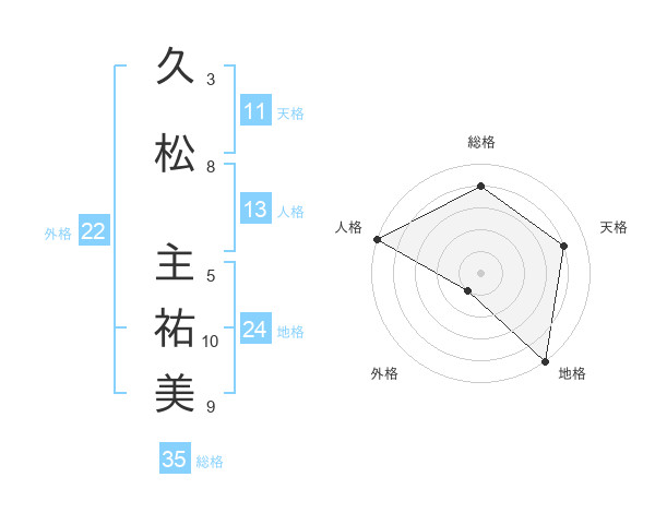久松 主祐美さんの総格は35画の4点!